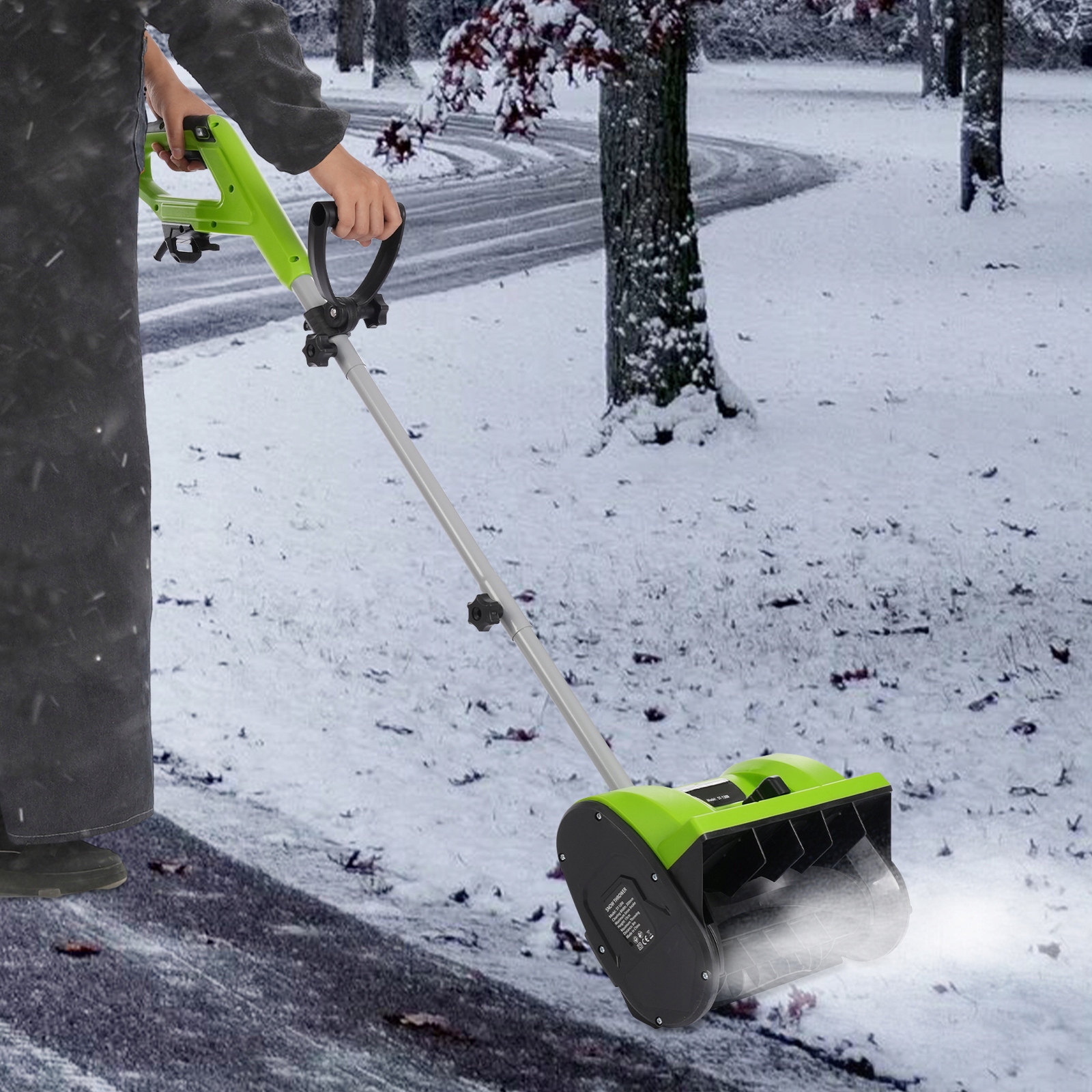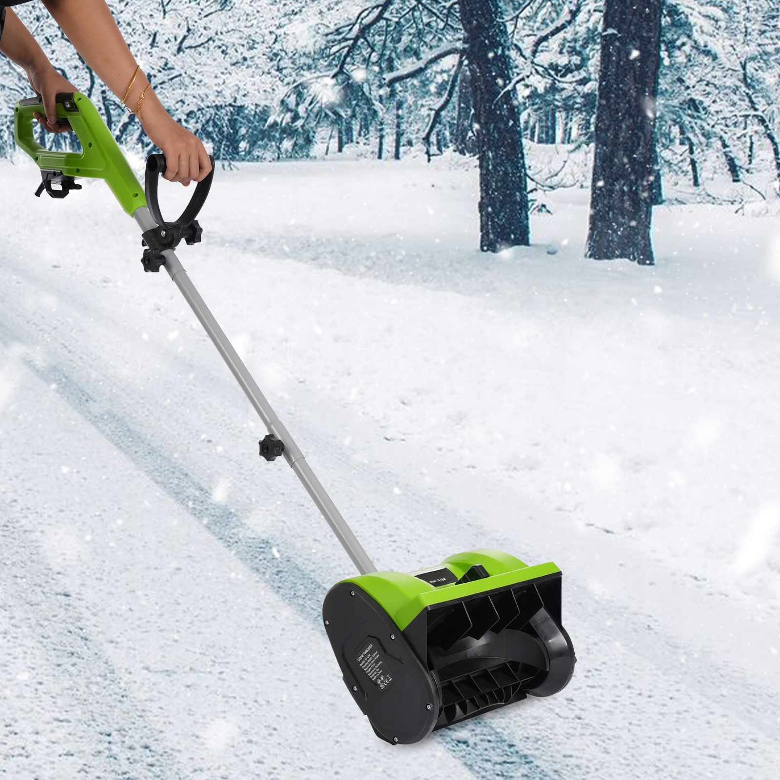 Высокая эффективность: мощный двигатель из чистой меди мощностью 1200 Вт и нейлоновый режущий ролик диаметром 9,84 дюйма могут очищать снег шириной 11,81 дюйма и максимальная высота 5,9 дюйма, что позволяет быстро выполнить работы по уборке снега.