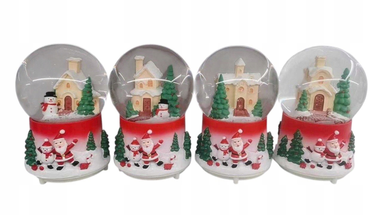 Снежный ком с Санта -Клаусом и Рождественский дом - Декоративный мяч с блеском - 1 кусок, случайный рисунок