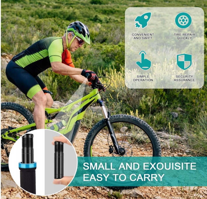 Комплект для ремонта велосипедных шин предназначен для бескамерных велосипедов. Если ваша велосипедная шина повреждена шипами и осколками стекла, вы можете использовать этот инструмент, чтобы за несколько минут заткнуть дыру, а затем накачать ее с помощью велосипедного насоса или насоса CO2.