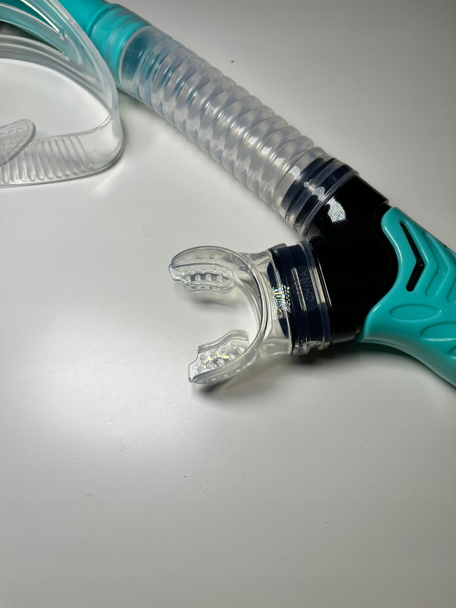 - труба с гибким дыханием В случае других полных масок может возникнуть проблема, которая после выхода из него вода осталась над клапаном, и ее было невозможно вдыхать, эта проблема определенно определенно не существует. Если какая -то вода попадает в трубу, она накапливается в камере в нижней части трубы и может снова выйти через нижний клапан через прочный выхлоп. Кроме того, труба гибко прикреплена к очкам, поэтому вы можете свободно отрегулировать высоту и плетение