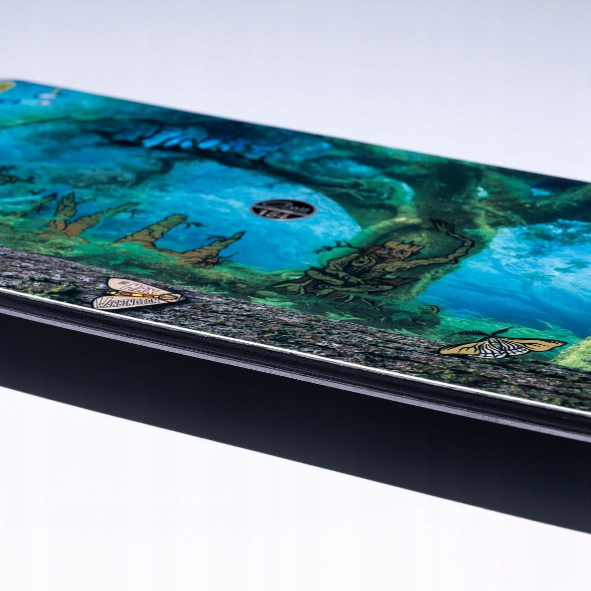 Стержень из осины и павловнии (сертифицирован FSC), армированный трех- и двунаправленным стекловолокном (три-ось + би-ось), обеспечивает эластичность и долговечность. Верхний слой и основа, выполненные по экосублимированной технологии, придают эстетику и стойкость при минимальном воздействии на окружающую среду. Доска собирается вручную («Mervin Made») на заводе в штате Вашингтон.