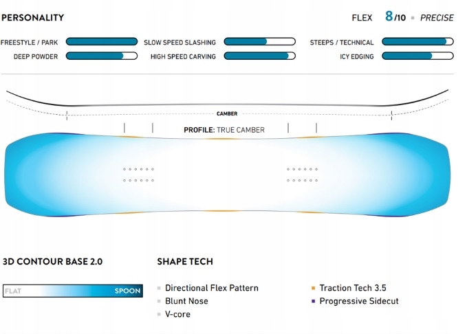 Aviator 2.0 отличается профилем True Camber, который обеспечивает невероятную взлетную мощность и превосходное преимущество. сцепление даже на самых крутых склонах. Это доска Directional Twin со слегка сдвинутым назад положением, что означает, что, хотя она легко едет на переключателе, ее истинный потенциал раскрывается при езде в естественном направлении. Идеально подходит для гонщиков, которые большую часть времени проводят на прямой езде, но при этом ценят гибкость.