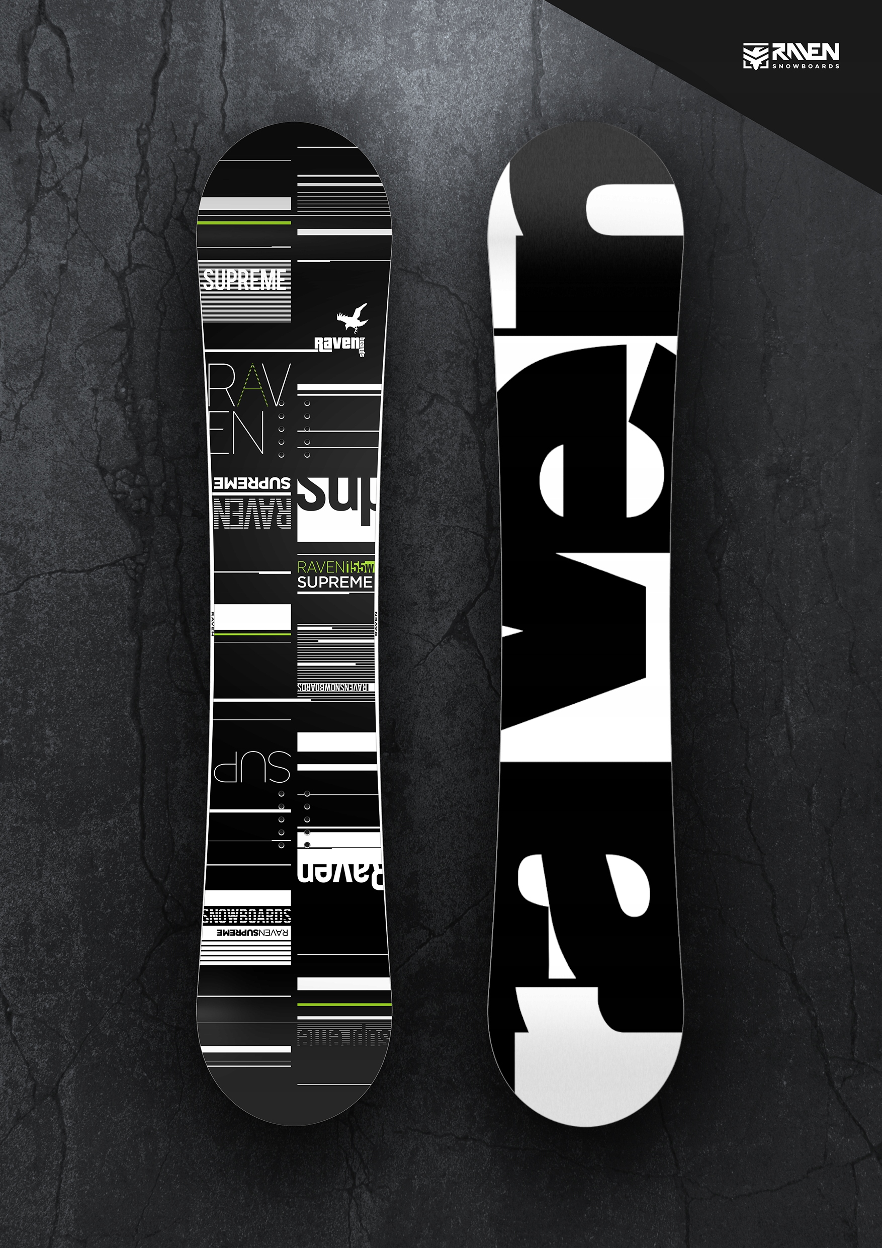 Если Raven Relict для вас слишком сложен, выберите Supreme. Flatrock и немного более мягкая гибкость делают их идеальным выбором, если вы катаетесь по подготовленному склону так же часто, как ездите в сноупарк. Благодаря высокому рокеру на носу и хвосте, это также отличный вариант для пухляка! Кроме того, Supreme легкий. Вместо использования традиционного «токсичного» лакированного верхнего листа Supreme использует сверхтвердый поликарбонатный ламинат, который трудно поцарапать. Благодаря этому Supreme экологичен и заметно легче традиционных конструкций.