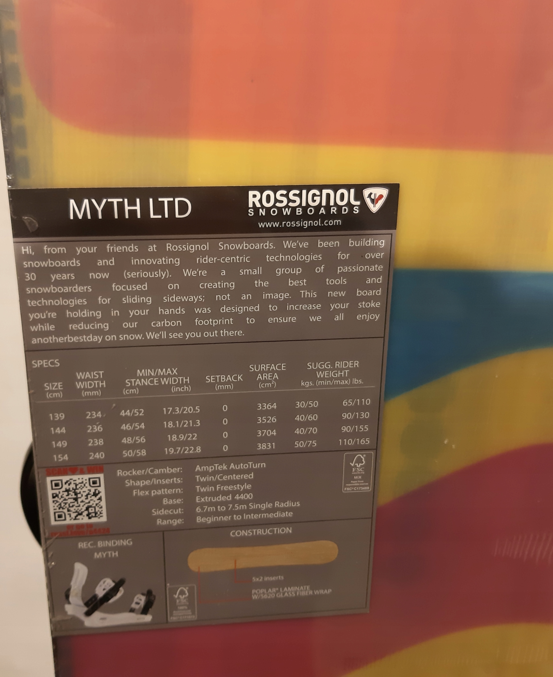 Детский сноуборд Rossignol MYTH — легкая и веселая модель, идеально подходящая для самых маленьких, которые хотят быстро развиваться на склоне и в парке.