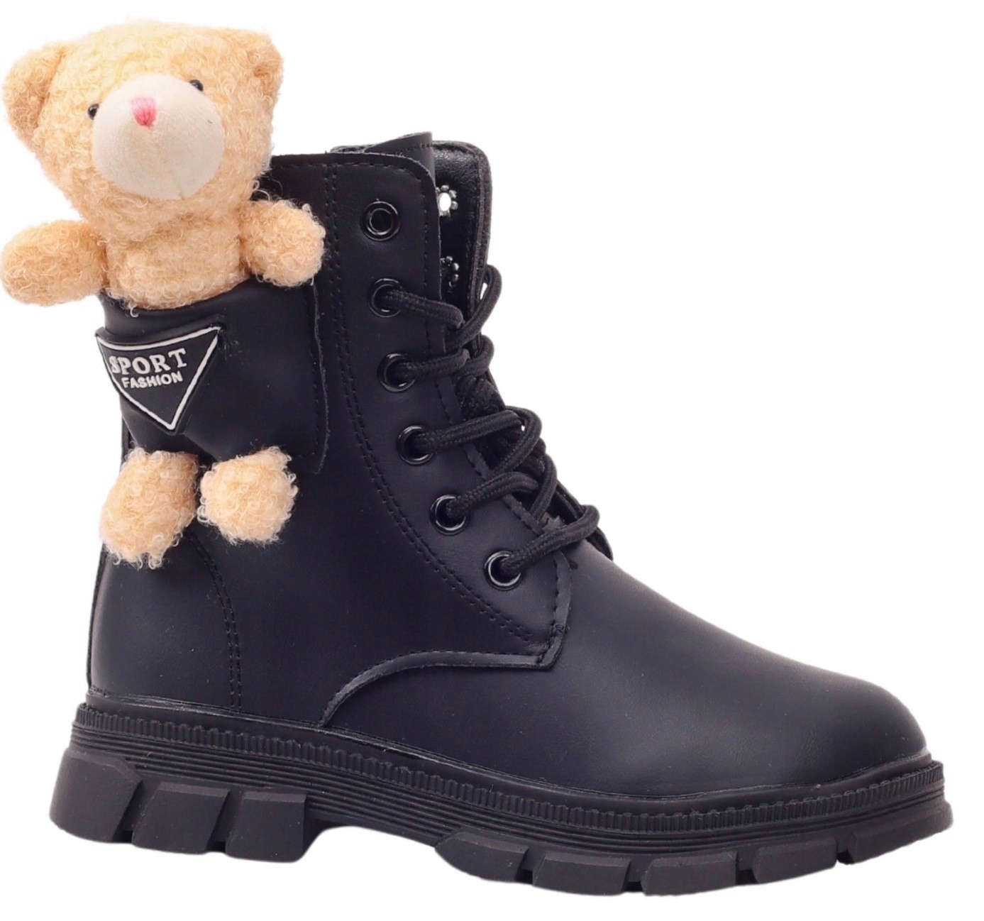 СНЕЖНЫЕ БОТИНКИ ДЛЯ ДЕВОЧЕК С МЕДВЕДЕМ, ЧЕРНЫЕ, ЗИМНИЕ УТЕПЛЕННЫЕ ТРАПЕРЫ, КОМФОРТНЫЕ БОТИНКИ