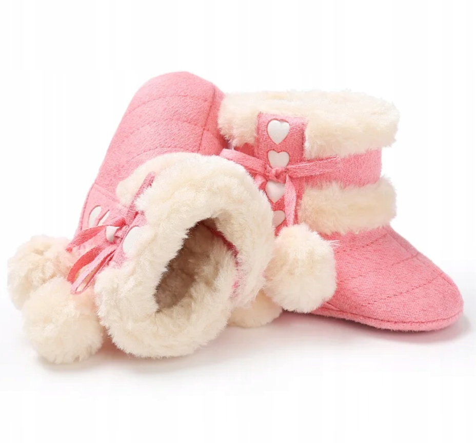 SNOW BOOTS теплі BABY BOOTS розмір 18/19 11,8 см 6-12 м РОЖЕВІ з хутром