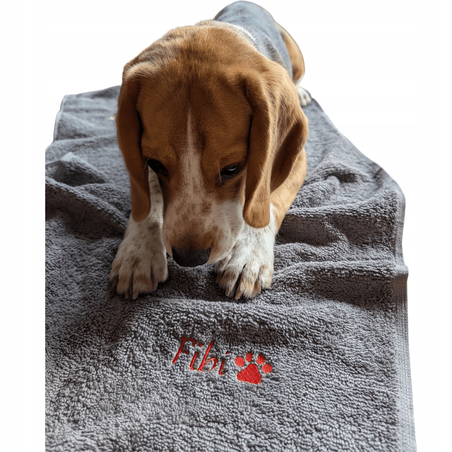 Полотенце для собак с 100% вышитым названием, впитывающее хлопок 50x100 серый