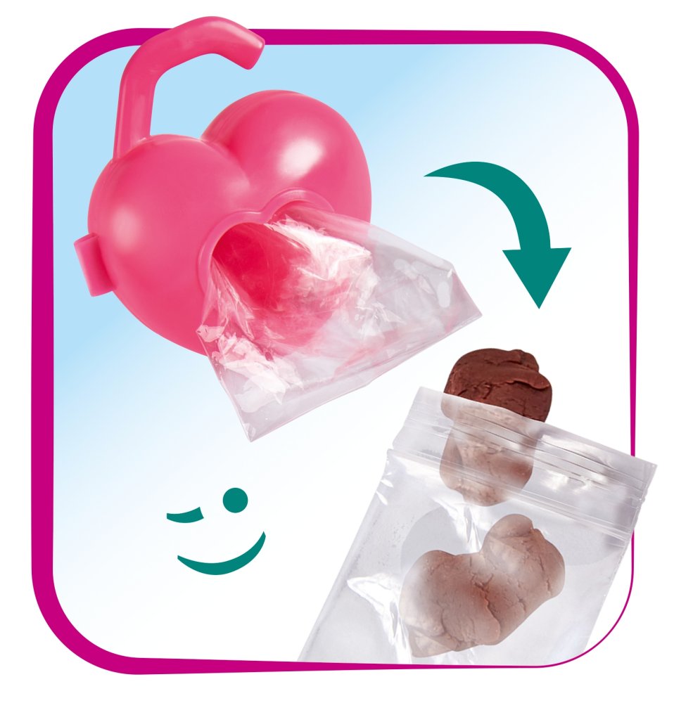 Poo Poo Puppy — очаровательная собачка из серии Chi Chi Love. Приготовьте печенье для своего любимого питомца. Поместите пластичную массу в форму и приготовьте вкусные угощения, а затем покормите ими щенка. Время для любимой прогулки! Наденьте поводок и выведите его на прогулку, не забудьте взять с собой сумки, входящие в комплект. Когда вы гуляете с собакой на поводке, она покакает, пройдя около метра. Теперь уберите за своим питомцем! Этот необычный набор наверняка доставит массу радости детям, мечтающим завести собственного питомца. А благодаря своей функции научит детей ответственности и заботе о животных.