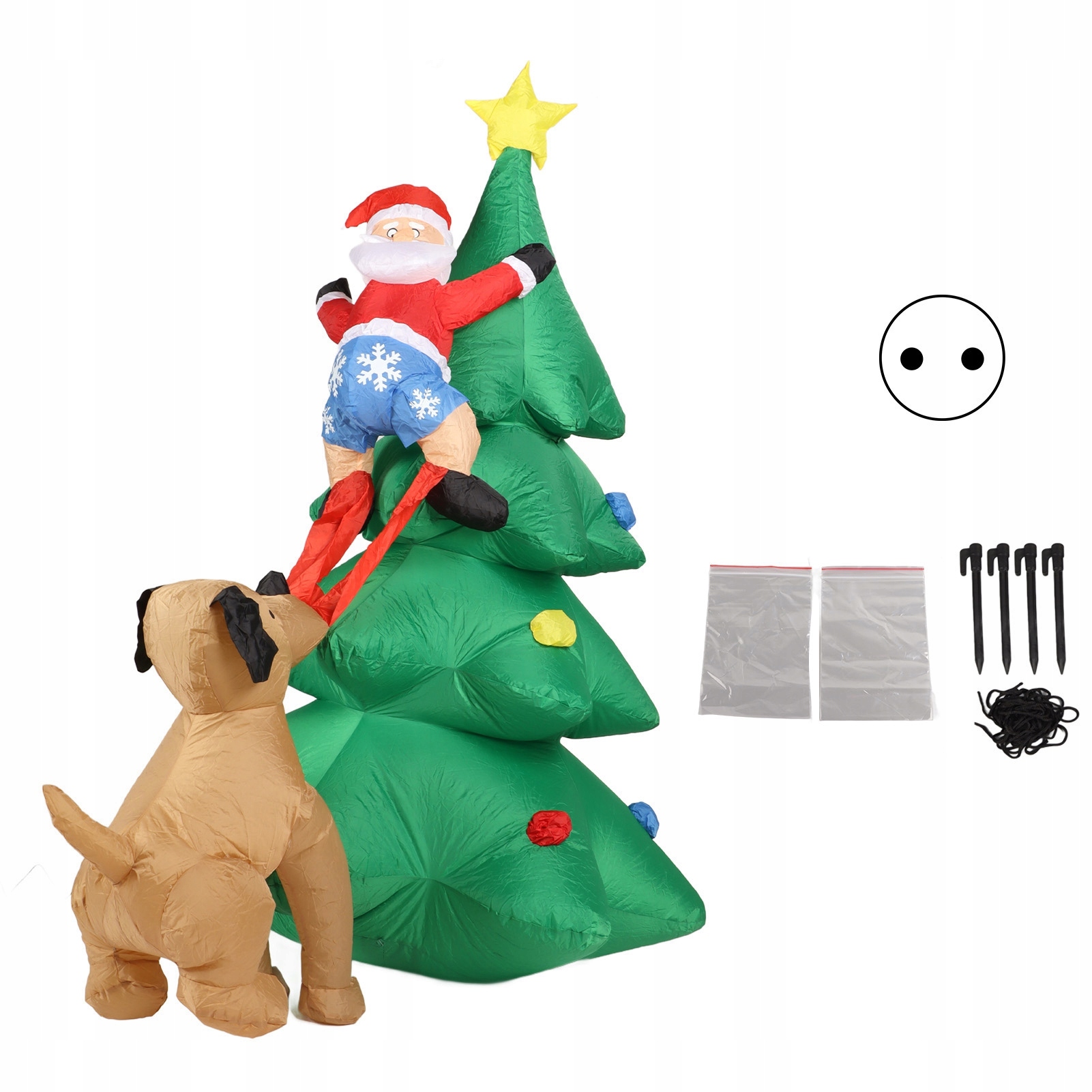 Собака, преследующая Санта-Клауса, взбирается на надувную светодиодную ёлку