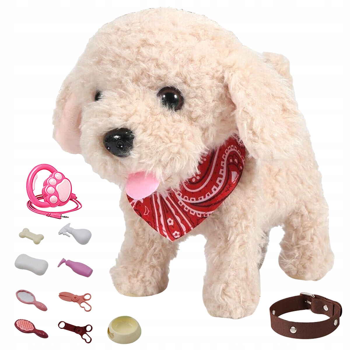 🐶✨🐶Интерактивный электронный щенок с функцией плюшевой игрушки для детей, ходит/лает/виляет хвостом/кивает, с собачьей миской/феном/ножницами/расческой и другими игровыми аксессуарами