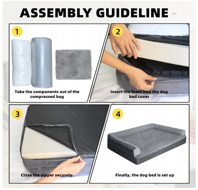 - Легко чистить - кровать для собак подходит для промывки, оборудована прочными молниями, которые облегчают разборку и складывание. Съемное крышку дивана для собак можно промыть в стиральной машине и обеспечивает быструю очистку и легкий уход. Просто бросьте его в стиральную машину, и это как новый. Эта конструкция может продлить срок службы внутренней губки и логово домашних животных. Совет: не вымойте пену и не заполняйте.