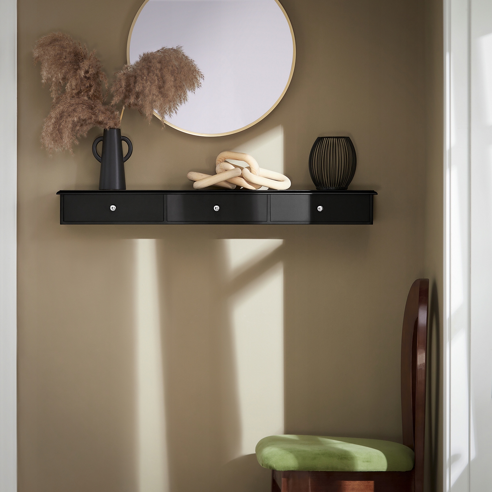 SoBuy Подвесной столик с настенной полкой и 3 ящиками Black FRG43-L-SCH