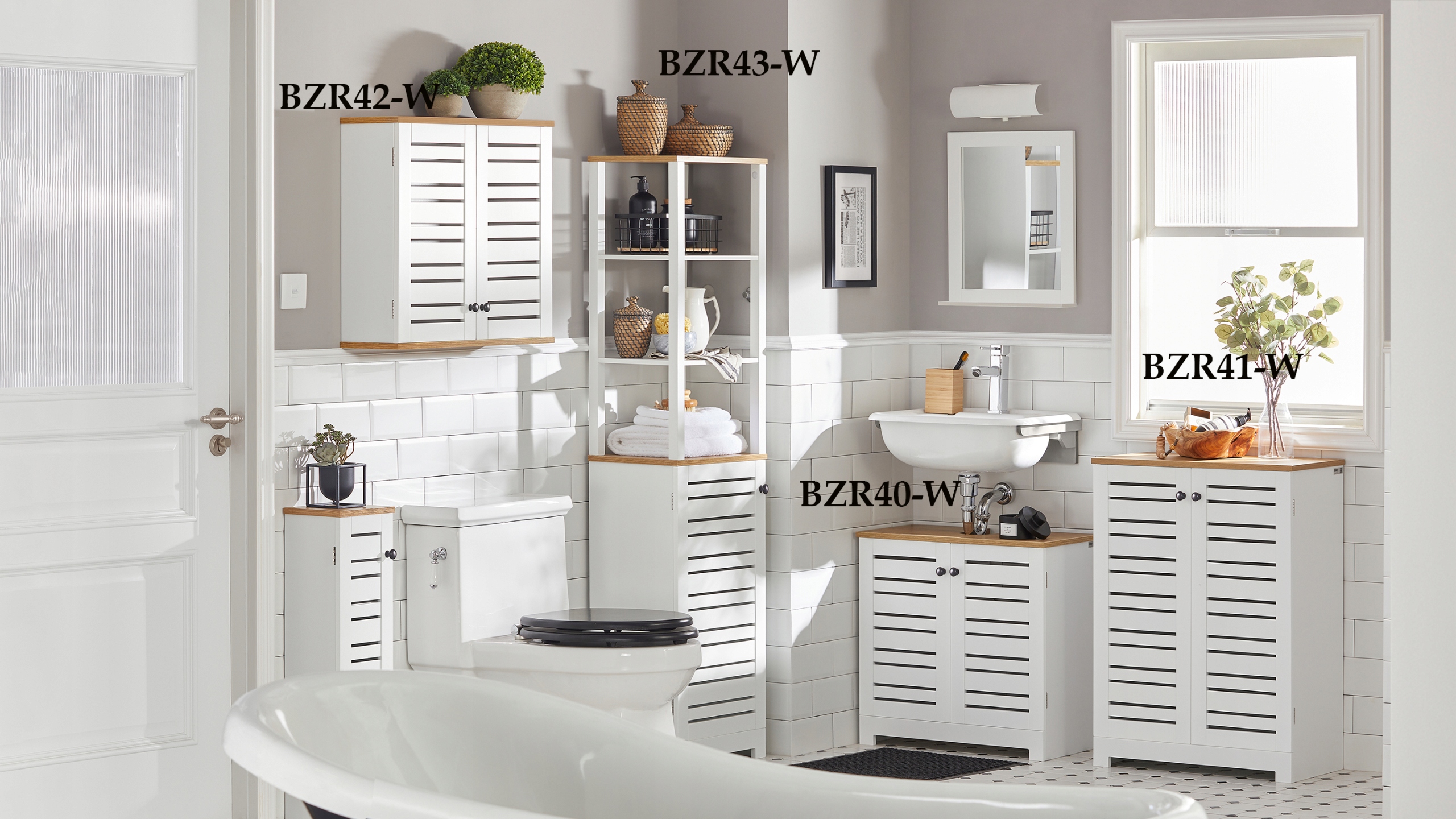 Набор мебели для ванной комнаты из 5 предметов : БЗР40-В; БЗР41-В; БЗР42-В; БЗР43-В; BZR44-W