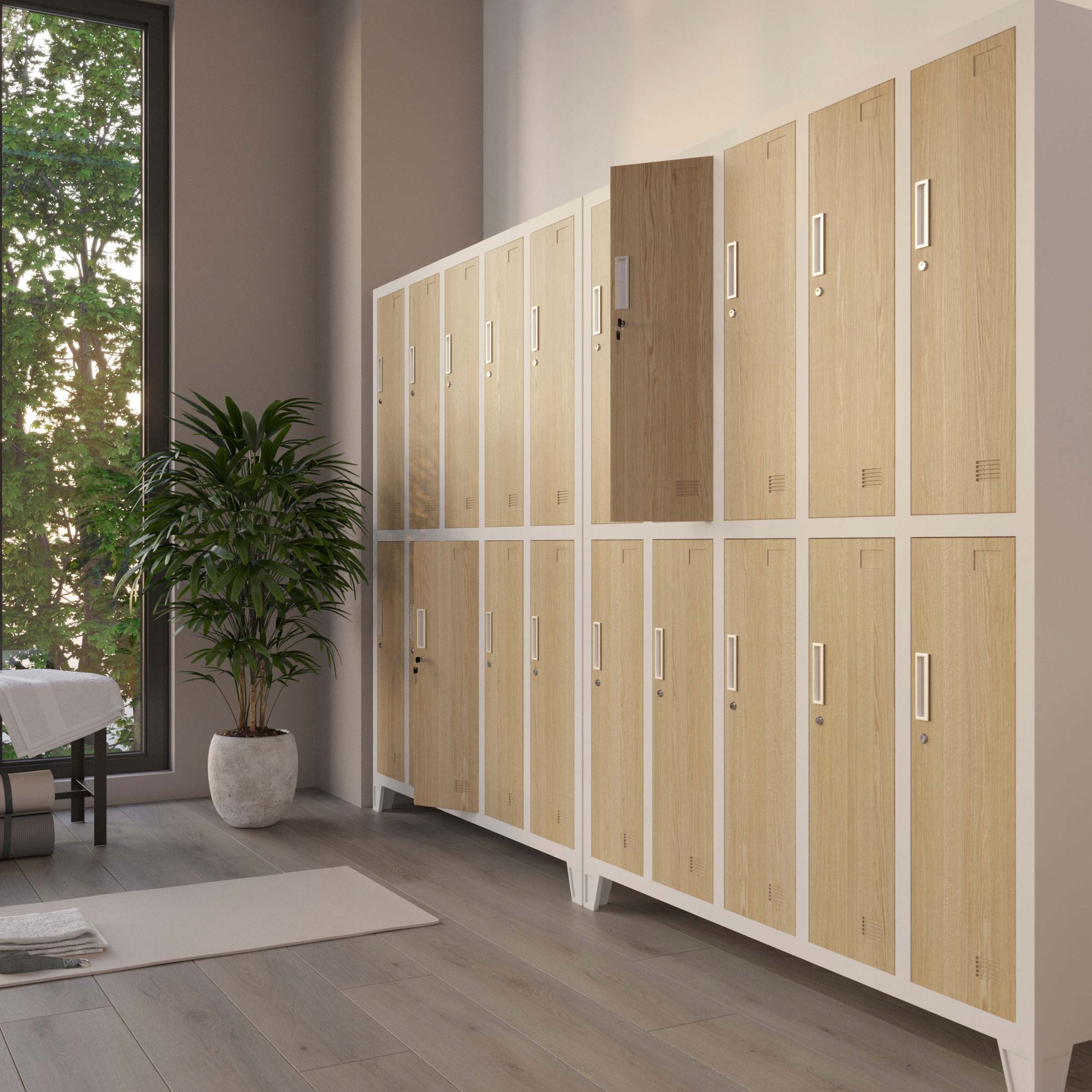 10 просторных отделений со встроенным ригельным замком обеспечивают сохранность одежды, инструментов и личных вещей. Дополнительно шкаф позволяет хранить документы в соответствии с требованиями GDPR 2018.