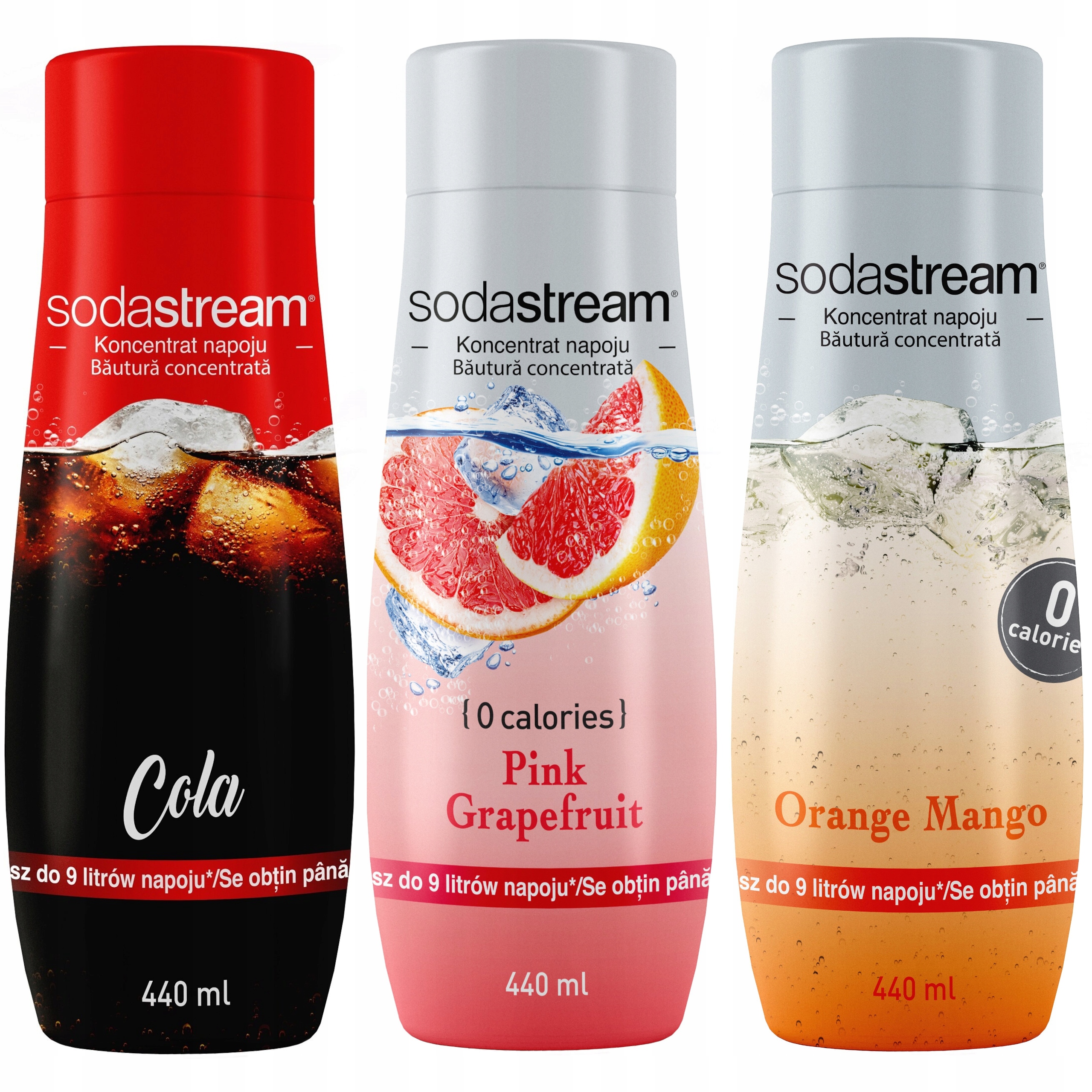 Вкус Колы + Розовый Грейпфрут + Апельсин-Манго – это вкусы напитков, которые благодаря Концентраты SodaStream можно приготовить у себя на кухне.