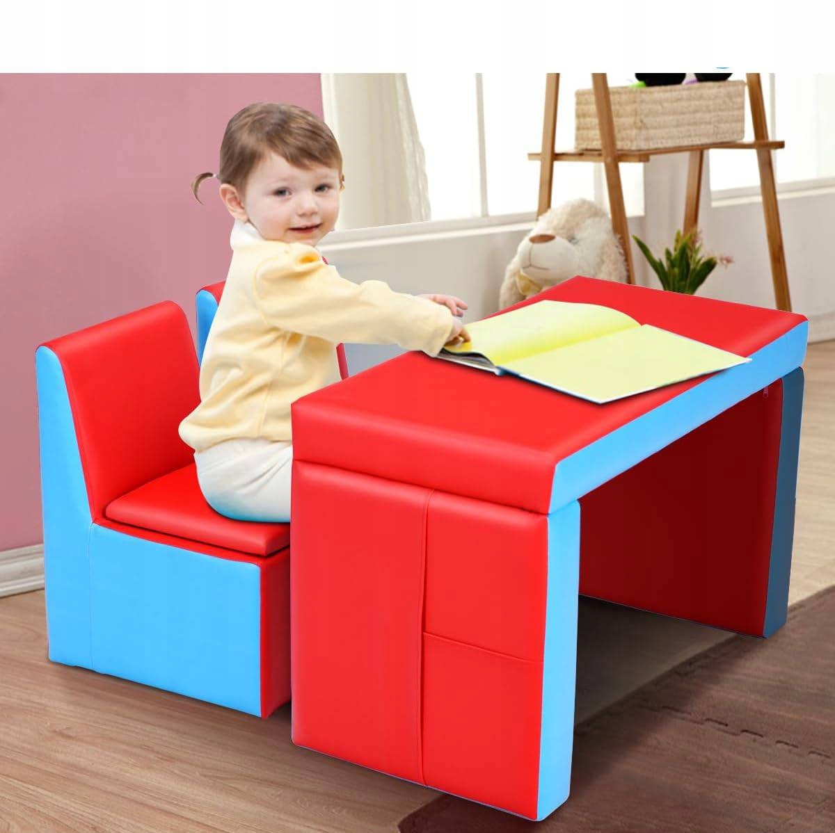 sofa dziecięca 2 w 1, stół dziecięcy z 2 krzesłami i ukrytym schowkiem