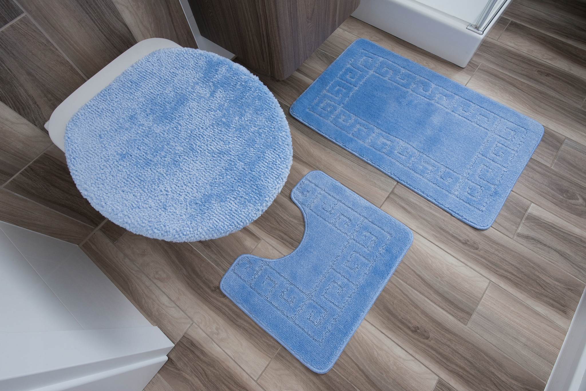 Резные узоры на ковриках – трехмерный эффект. Под ним имеется специальная противоскользящая резиновая подкладка. Коврики для ванной комнаты представляют собой широкий ассортимент стильных моделей, отличающихся современным геометрическим дизайном в приглушенных тонах серого, бежевого, коричневого, зеленого и синего.