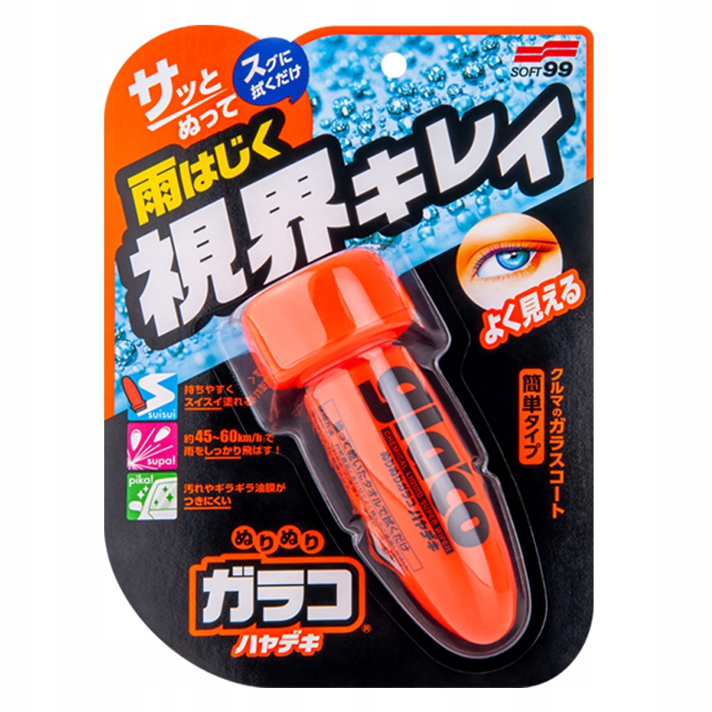 - Просто распределите продукт на стекло и немедленно удалите остатки, чтобы насладиться эффектом жидкого утиха glaco . Он буквально выталкивает воду из стакана, благодаря которой со скоростью 45 км/ч видимость и комфорт вождения в дождливых условиях улучшается, а необходимость использования дворников уменьшается до минимума.