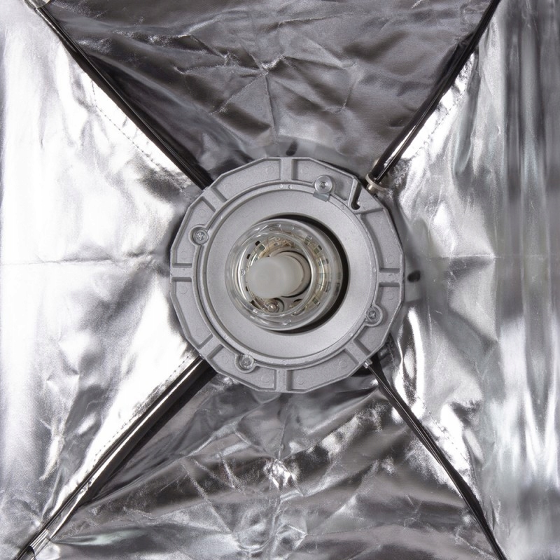 - Алюминиевое монтажное кольцо в монтажном стандарте Bowens, с возможностью поворота прикрепленного софтбокса на 360 градусов, прижимной винт расположен во внутренней части софтбокс.