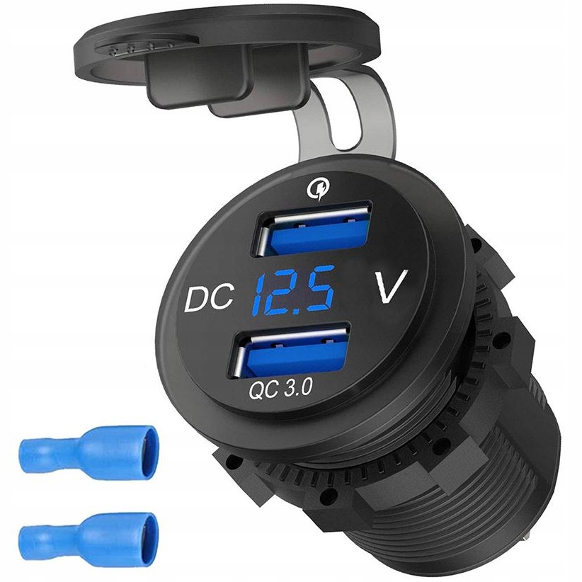 Мотоциклетный розетка 12 В 2x USB3.0 Вольтметр 36W IP54 светодиод