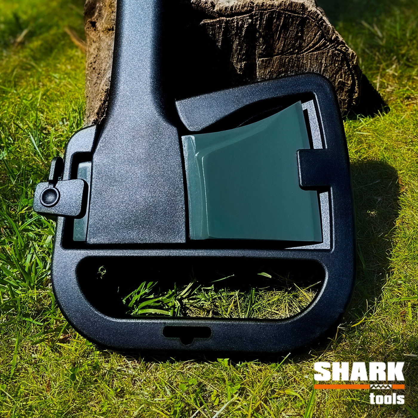 1️⃣Массивная головка из кованой углеродистой стали с тефлоновым (ПТФЭ) покрытием позволяет резко и мощно срезать пни диаметром более 30 см.
