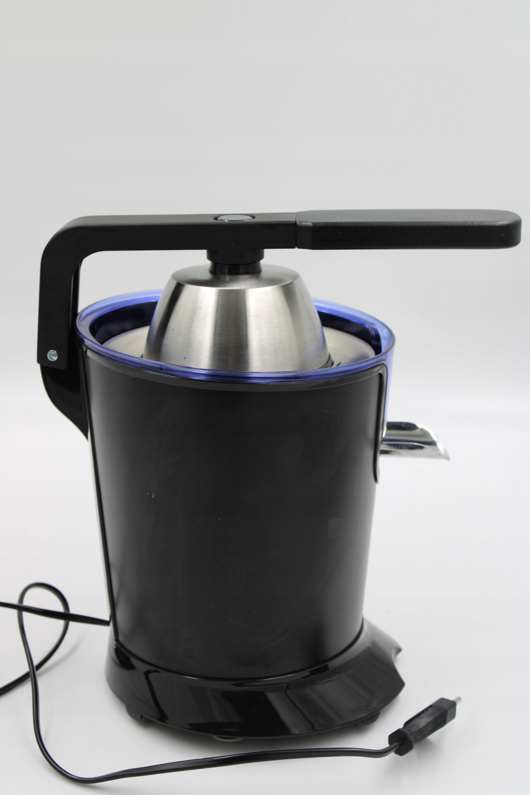Эта электрическая рычажная соковыжималка также имеет другие практичные функции, такие как рычаг с мягким контуром, который облегчает извлечение сока, и два конуса разного размера, которые позволяют отжимать сок из разных типов цитрусовых.
