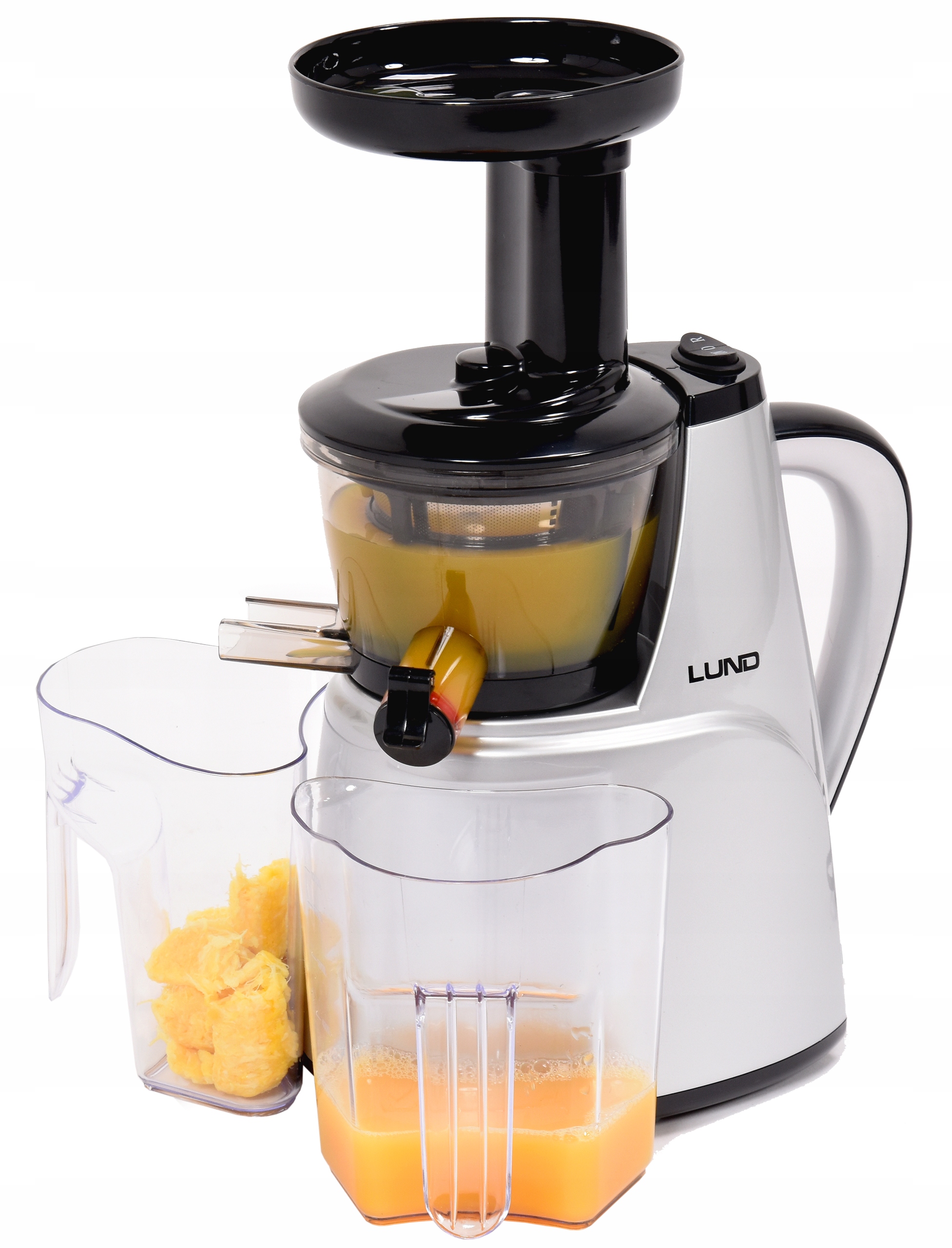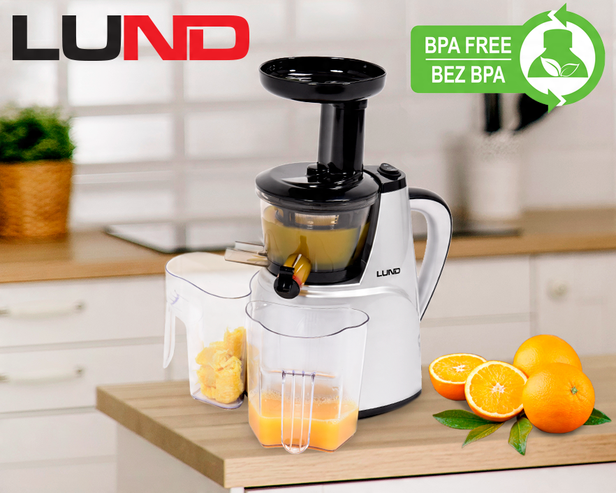 В низкоскоростной соковыжималке LUND можно легко приготовить полезные, свежие и витаминные соки, молочные коктейли и шербеты. Устройство имеет все необходимые удобства, такие как задний ход, противоскользящие ножки и плотная крышка-непроливайка.