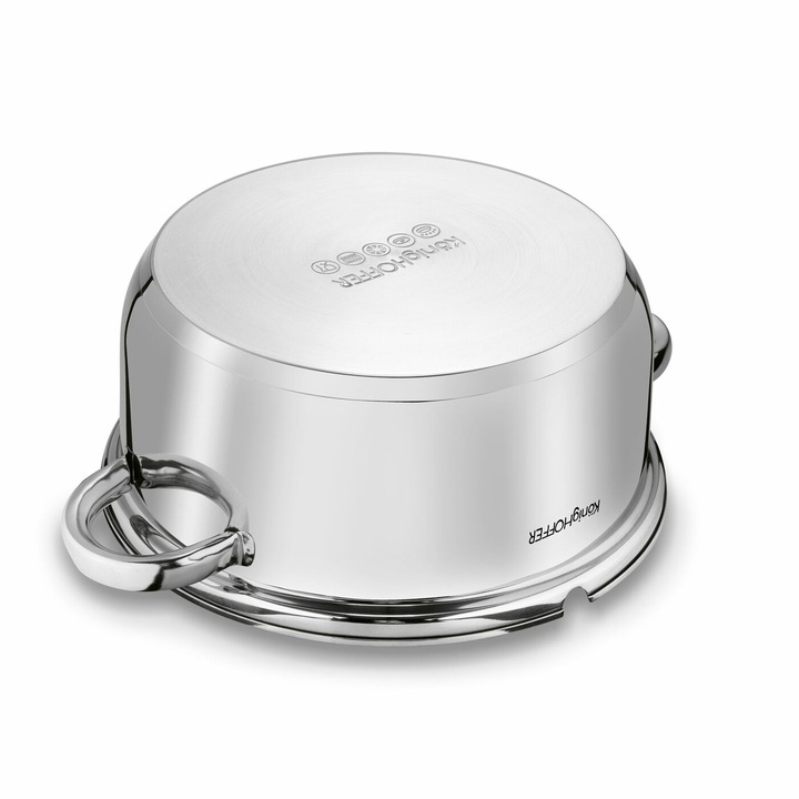 Другая информация: - общая высота: 34 см, - высота без крышки: 27 см, - акутермическое дно, - шланг из силикона и нержавеющей стали сталь, - стальной хомут, - стеклянная крышка с вентиляционным отверстием и стальным ободом, - логотип производителя на кастрюле, - внешняя отделка: глянец ✅