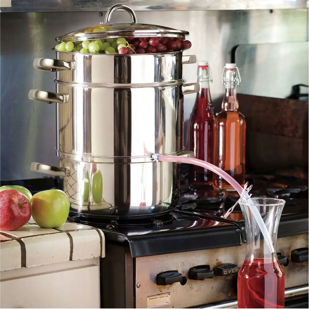 Соковыжималка изготовлена из высококачественной нержавеющей стали. Его используют для производства фруктовых или овощных соков путем обработки фруктов горячим паром. Остатки плодов после выделения сока можно использовать для приготовления джема.