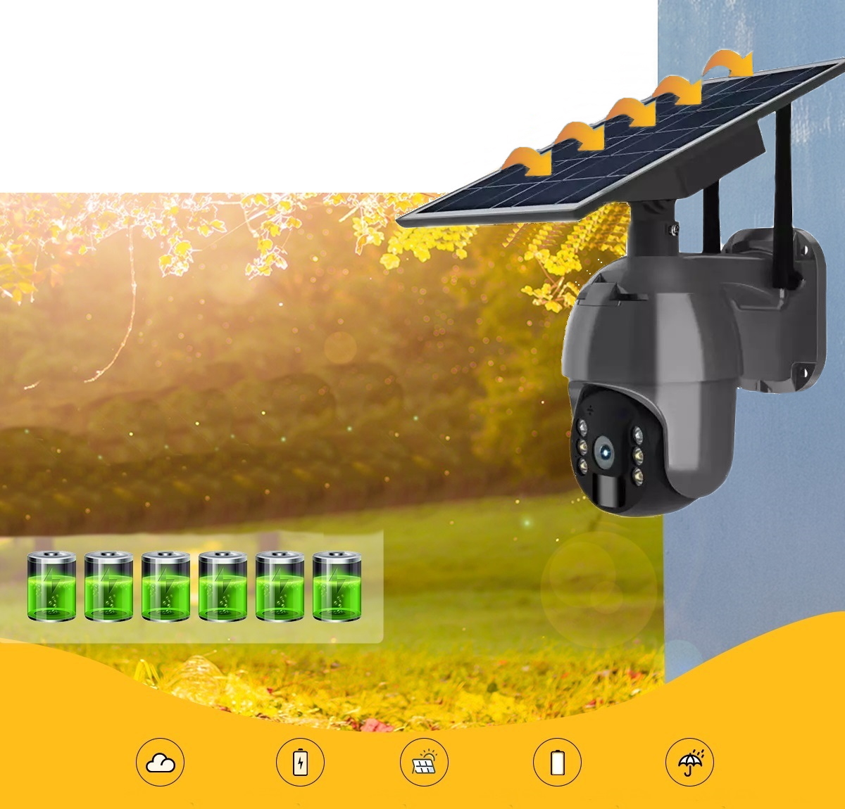 Один солнечный день обеспечит работу камеры в течение нескольких дней благодаря шести встроенным батареям, заряжаемым от солнечной панели мощностью 8 Вт.