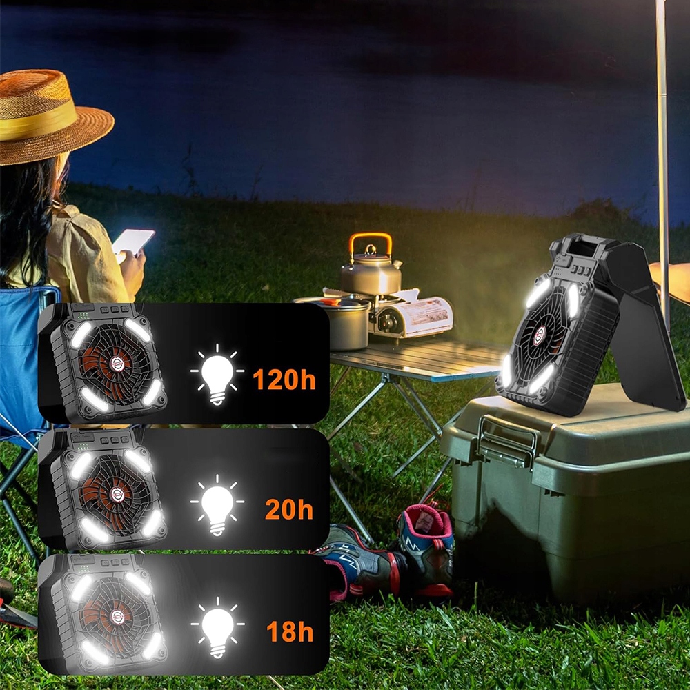 ▶ ️ -функциональный: Идеально подходит для кемпинга, блуждания, перебоев на электроэнергии, гаража, гаража или повседневного использования. Он сочетает в себе охлаждение, освещение и мобильность, обеспечивая комфорт во время приключений, в чрезвычайных ситуациях или дома.