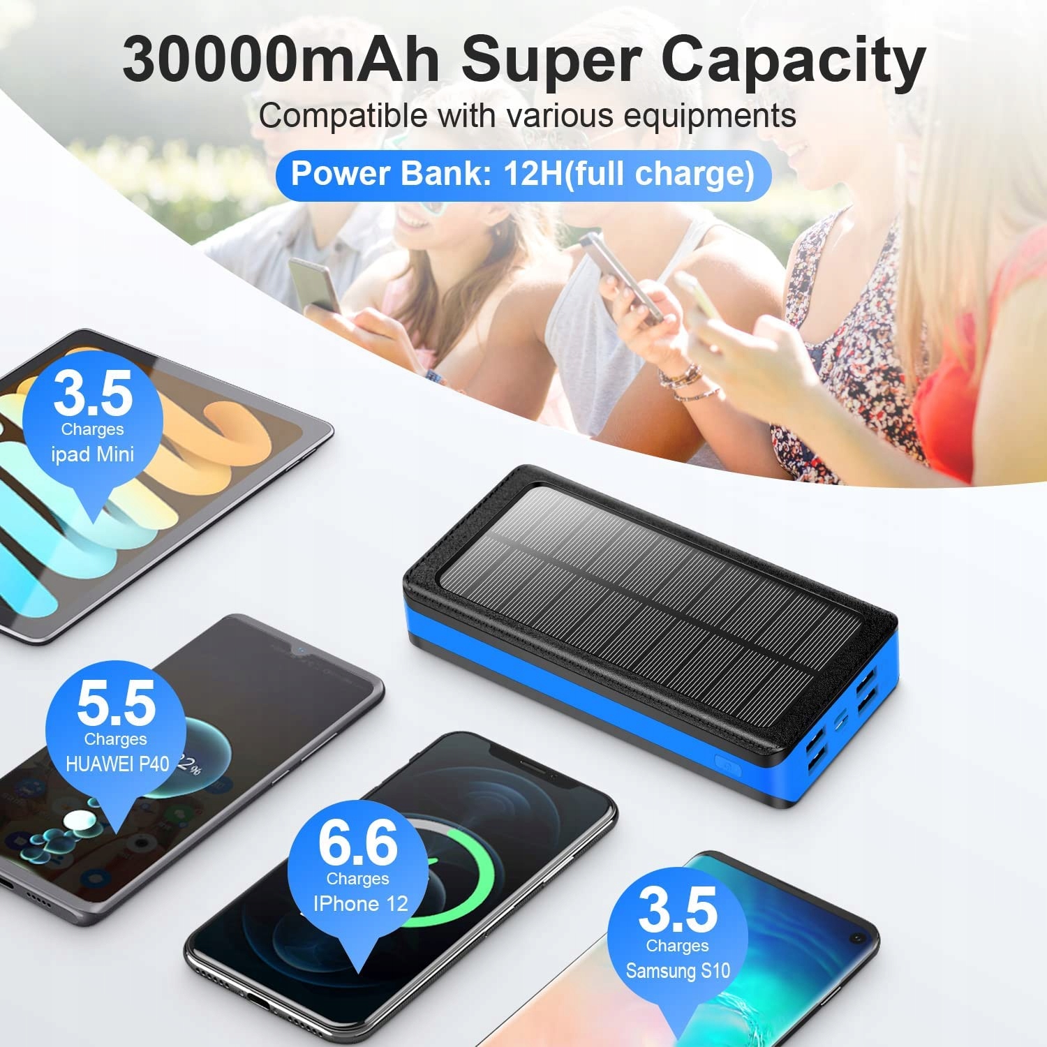 SOLARNY POWERBANK 30000 mAh NIEBIESKI 32LED 4X USB