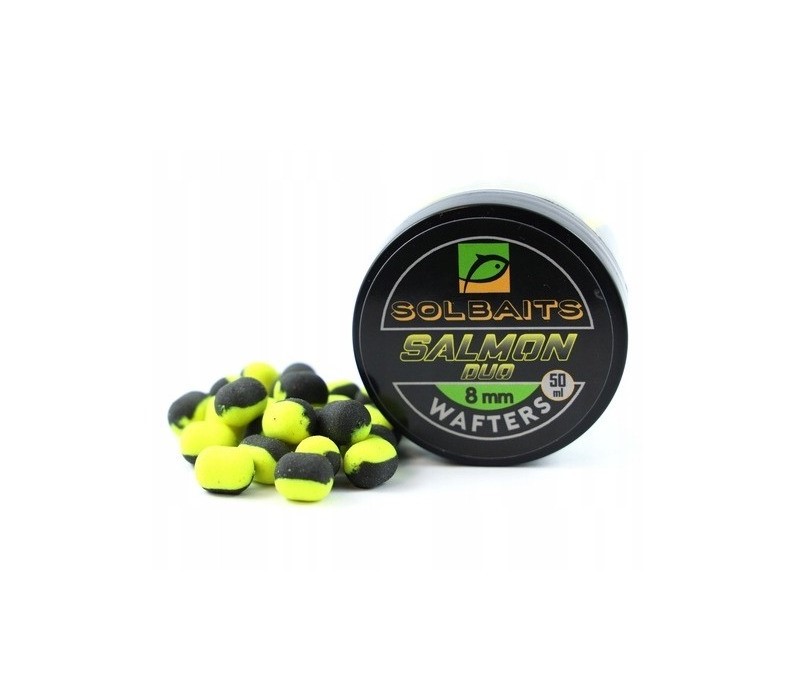 Solbaits Salmo Duo 8mm Wafters Black/Yellow Новые приманки на вафтерс от Przemek Solski. Solbaits Salmon Duo, желто-черный, диаметром 8 мм, с ароматом лосося. Это уникальные двухцветные удилища, очень эффективные для ловли крупной рыбы – карпа, леща, линя, белого амура и осетра. Лучше всего использовать его, закрепив на штыке.