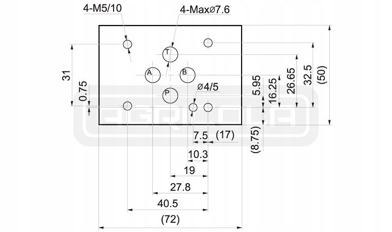 - Допустимое давление: P, A, B: 350 бар; Т: 100 бар