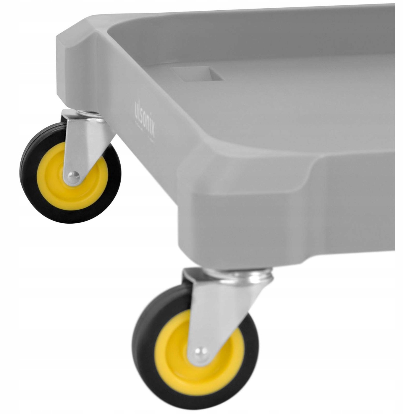 Функциональность техники Ulsonix обусловлена тремя полками размером 37 х 32 см. Их можно использовать для перевозки, например, щеток, моющих, чистящих и дезинфицирующих средств. Высота средней полки регулируется, что позволяет подогнать ее положение под размеры перевозимых предметов. Передняя платформа идеально подходит для размещения на ней мусорного бака или ведра с водой.