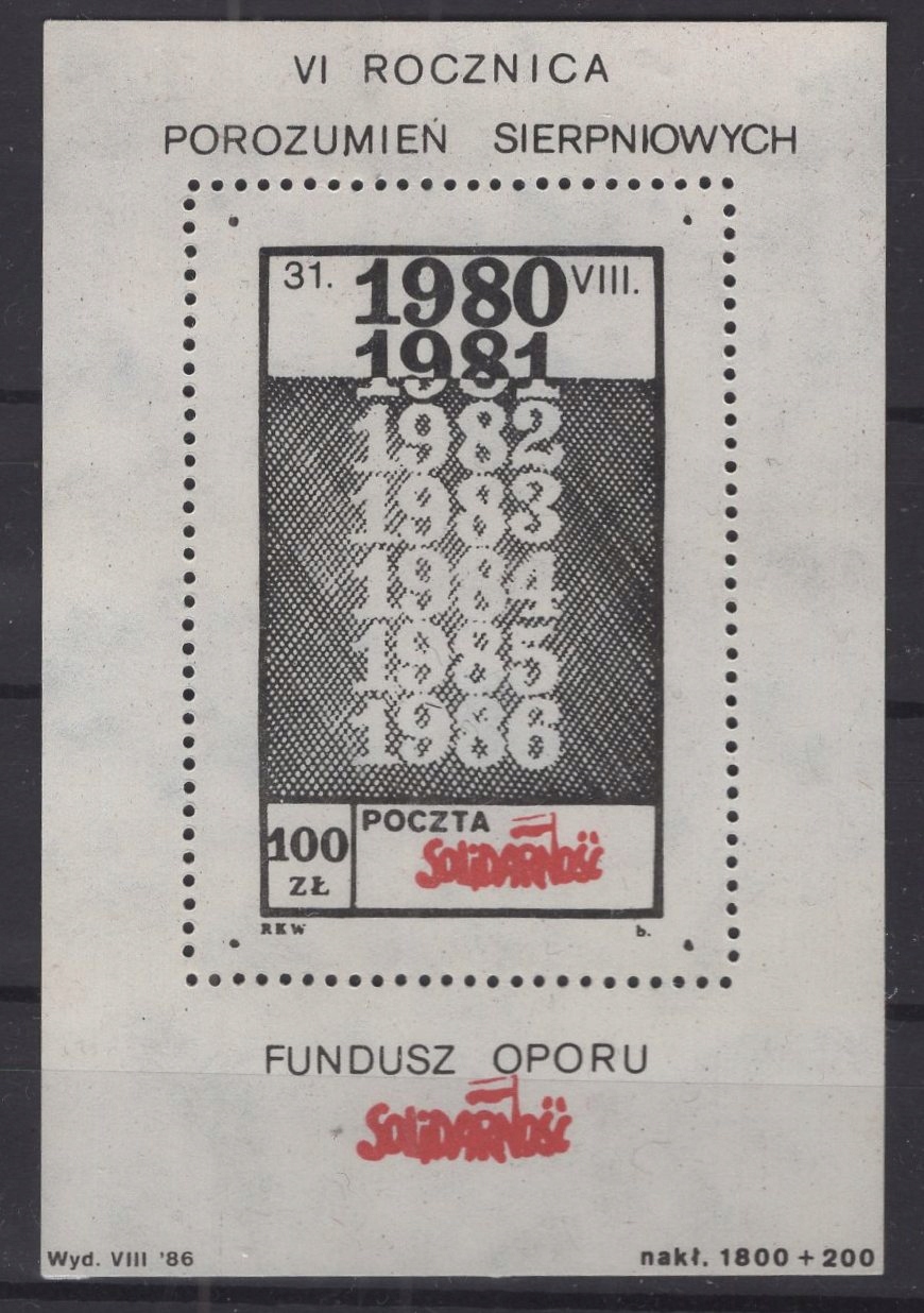СОЛИДАРНОСТЬ - 1986 ГОД, 6-ЛЕТИЕ АВГУСТСКИХ СОГЛАШЕНИЙ
