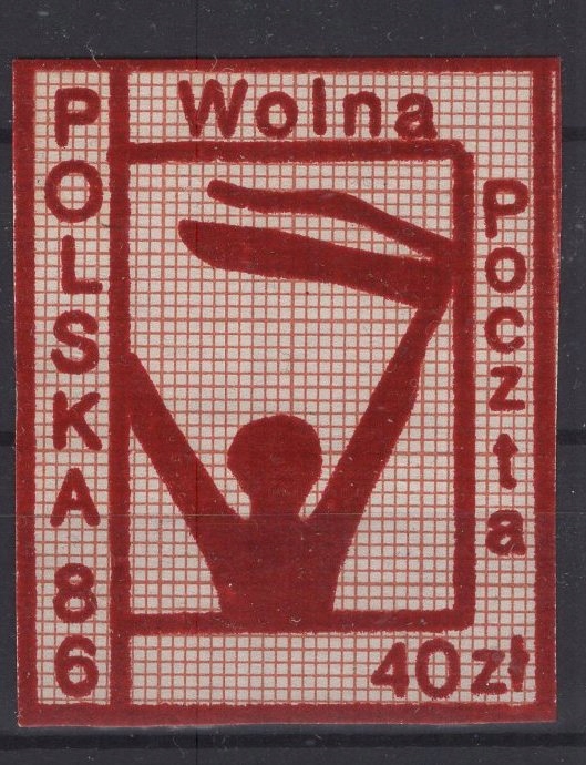 Солидарность - бесплатная Poczta Polska, Man with Flag, 1986