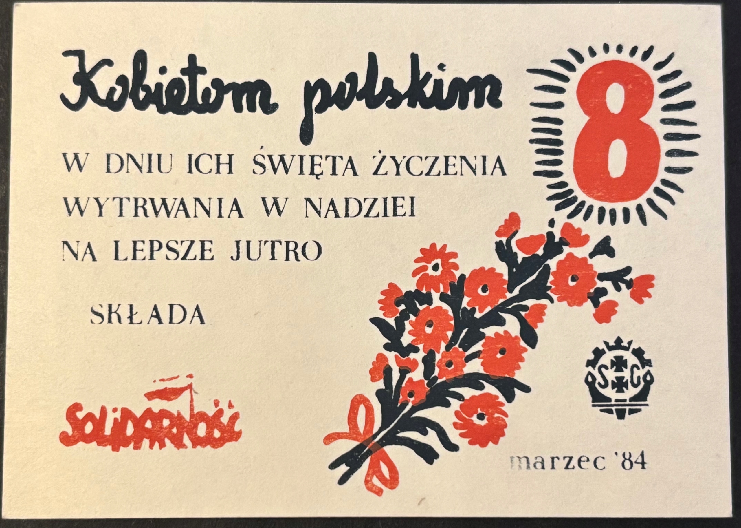 СОЛИДАРНОСТЬ - ЖЕНСКИЙ ДЕНЬ 1984 ГОДА - ОТКРЫТКА