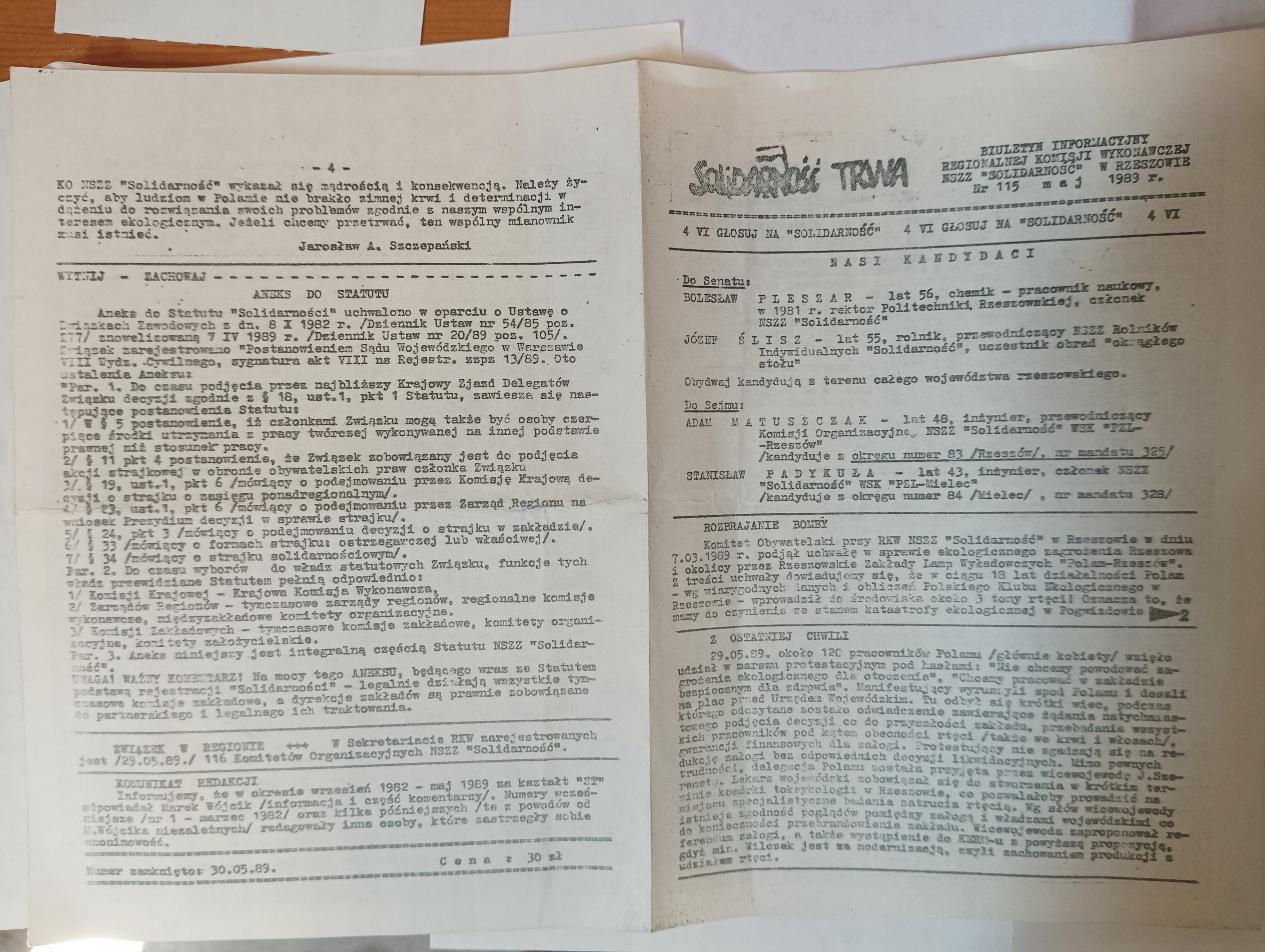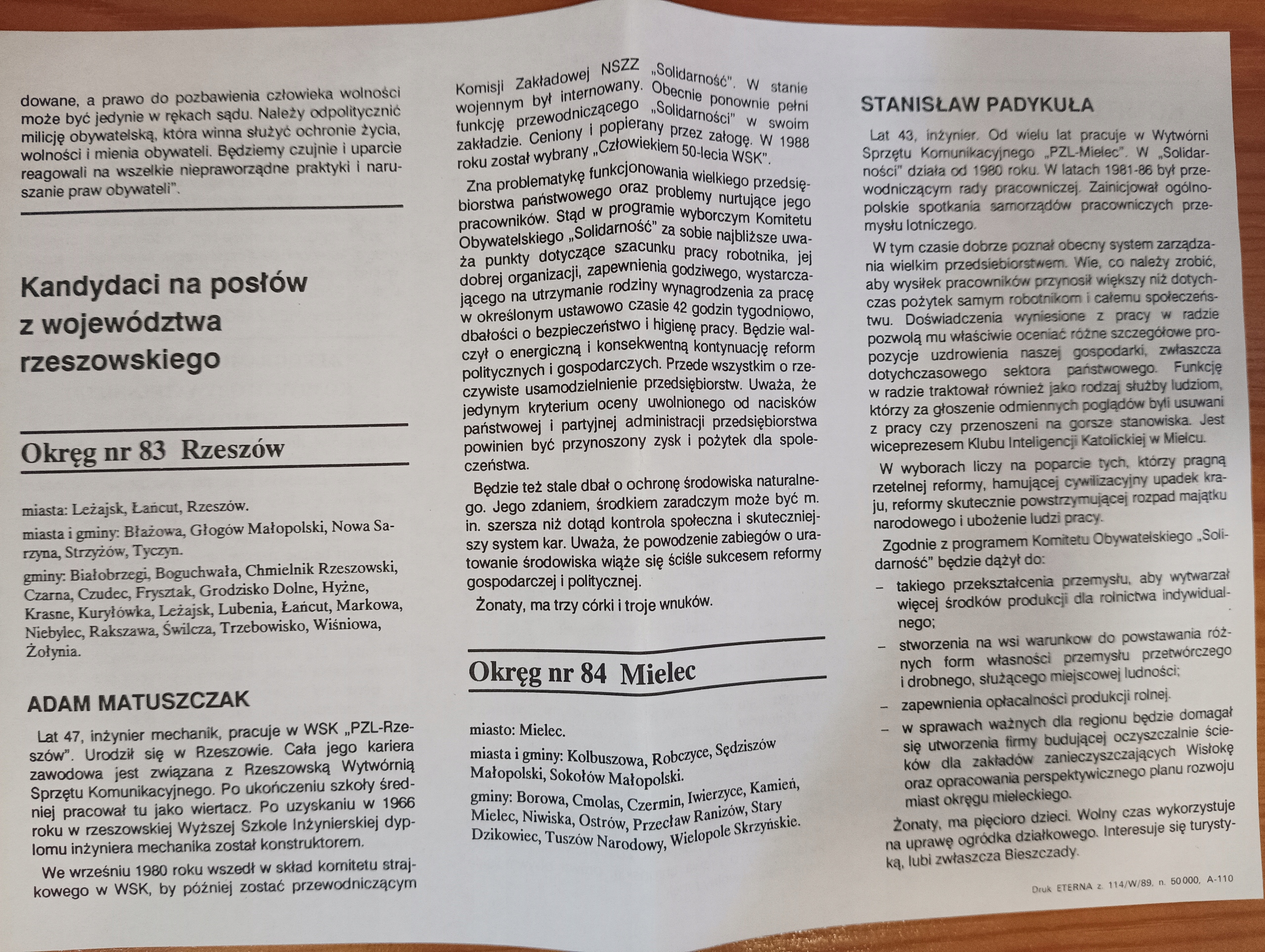 Выборы Солидарности 1989 г. -ristrict, Fleszar, ślisz, gzebyk -zzów, Mielec
