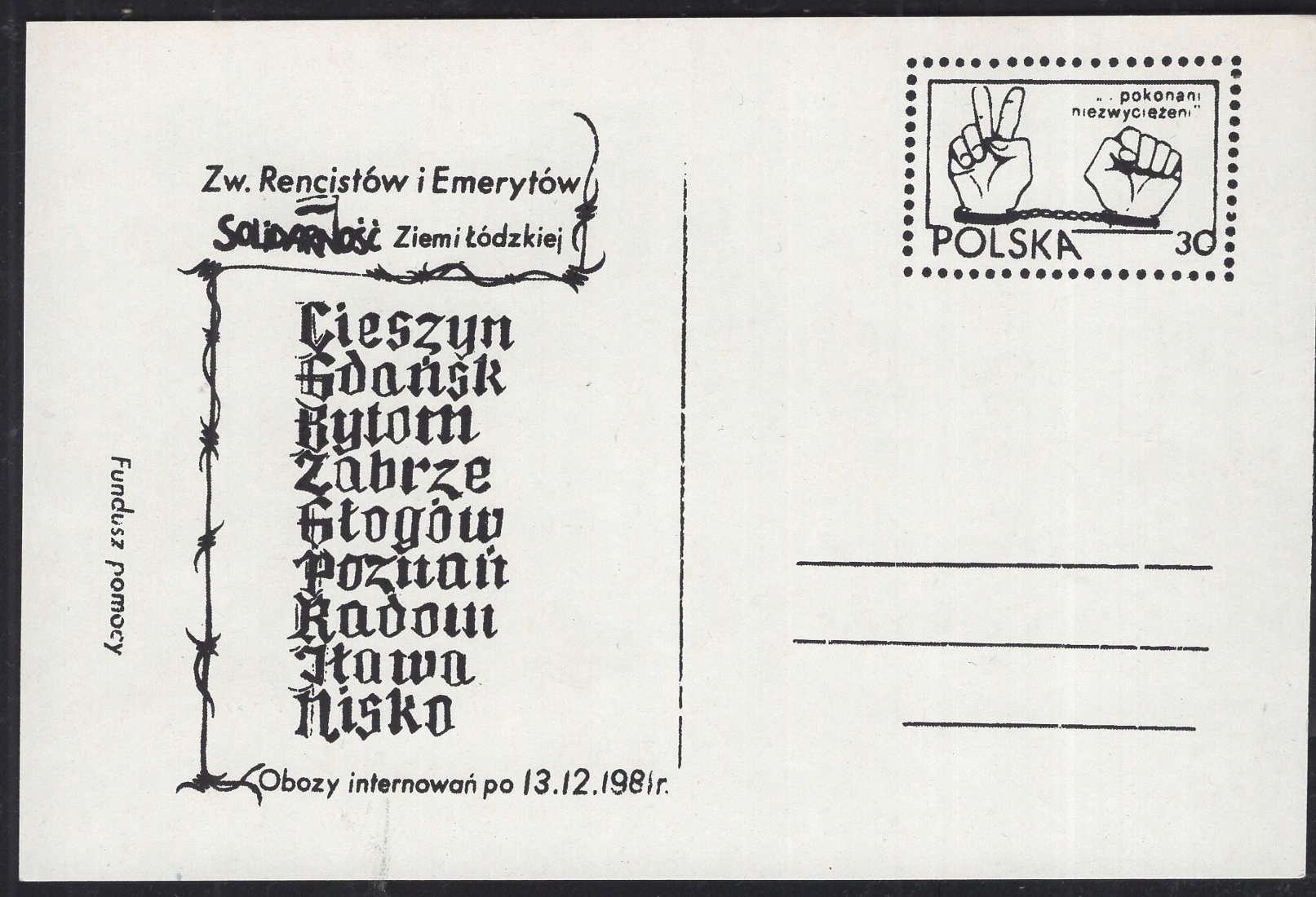 SOLIDARNOŚĆ - ZIEMI ŁÓDZKIEJ FUNDUSZ OBOZY INTERNOWANYCH PO 13,12,1981