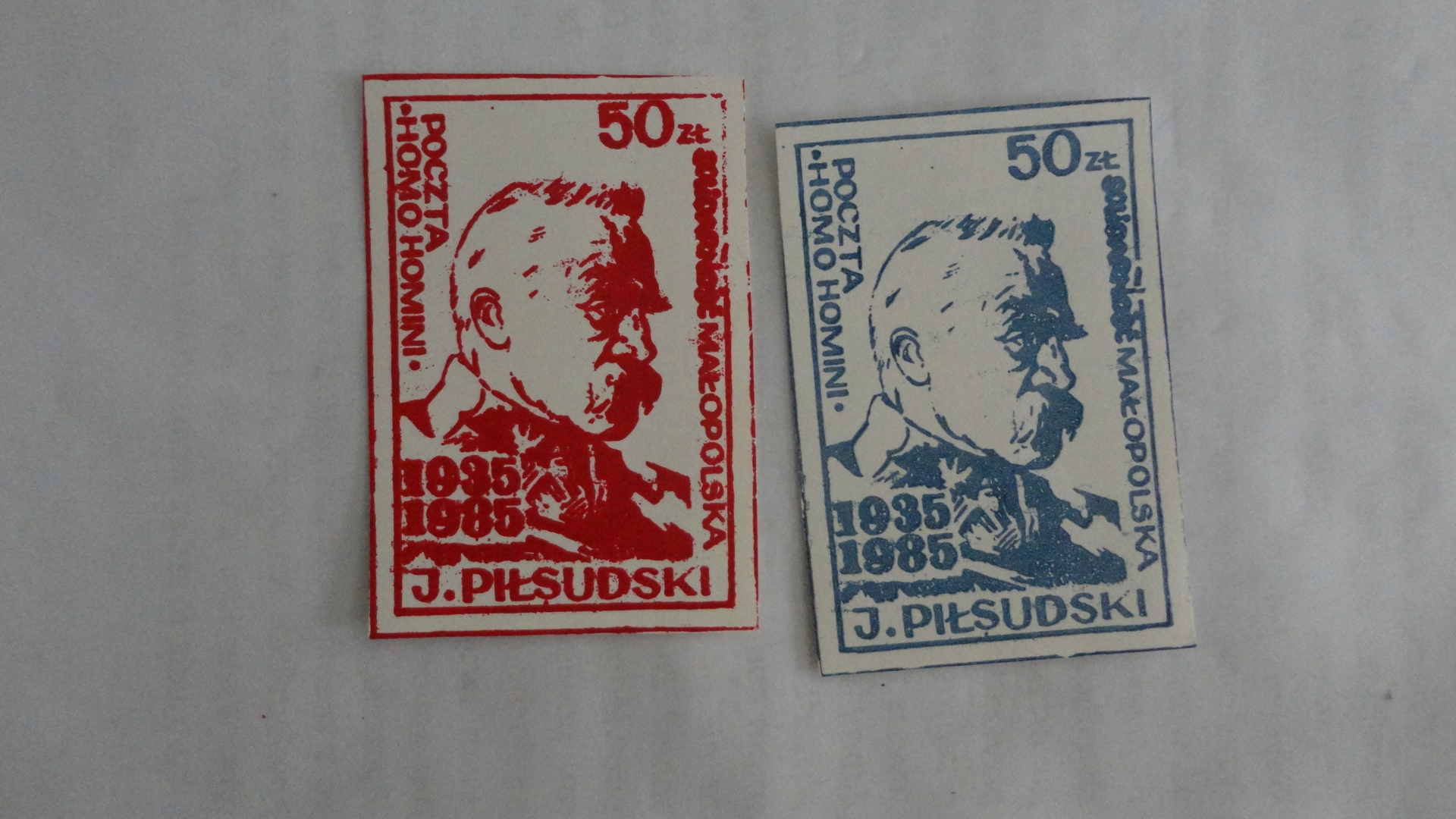 SOLIDARNOSC POCZTA HOMO HOMINI JOZEF PILSUDSKI 2 ZNACZKI