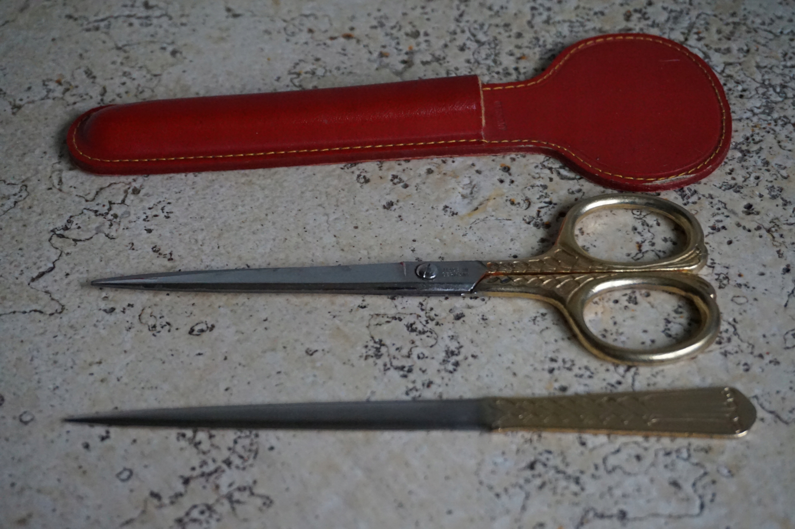 SOLINGEN ZESTAW NÓŻ DO PAPIERU NOŻYCZKI DO LISTÓW ANTYK VINTAGE ETUI SKÓRA
