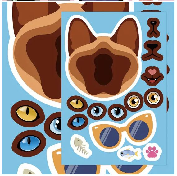 - Листы наклеек «Сделайте свою собственную форму» (8 листов) для детей