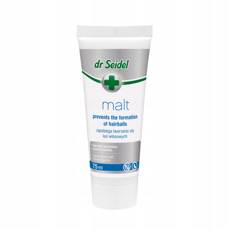 DR SEIDEL MALT PASTE 75 ML — препарат, предотвращающий образование комков шерсти (пилобезоаров), которые приводят к рвоте и запорам. Я регулирую работу кишечника. Препарат облегчает транспортировку шерсти по пищеварительному тракту кошки.