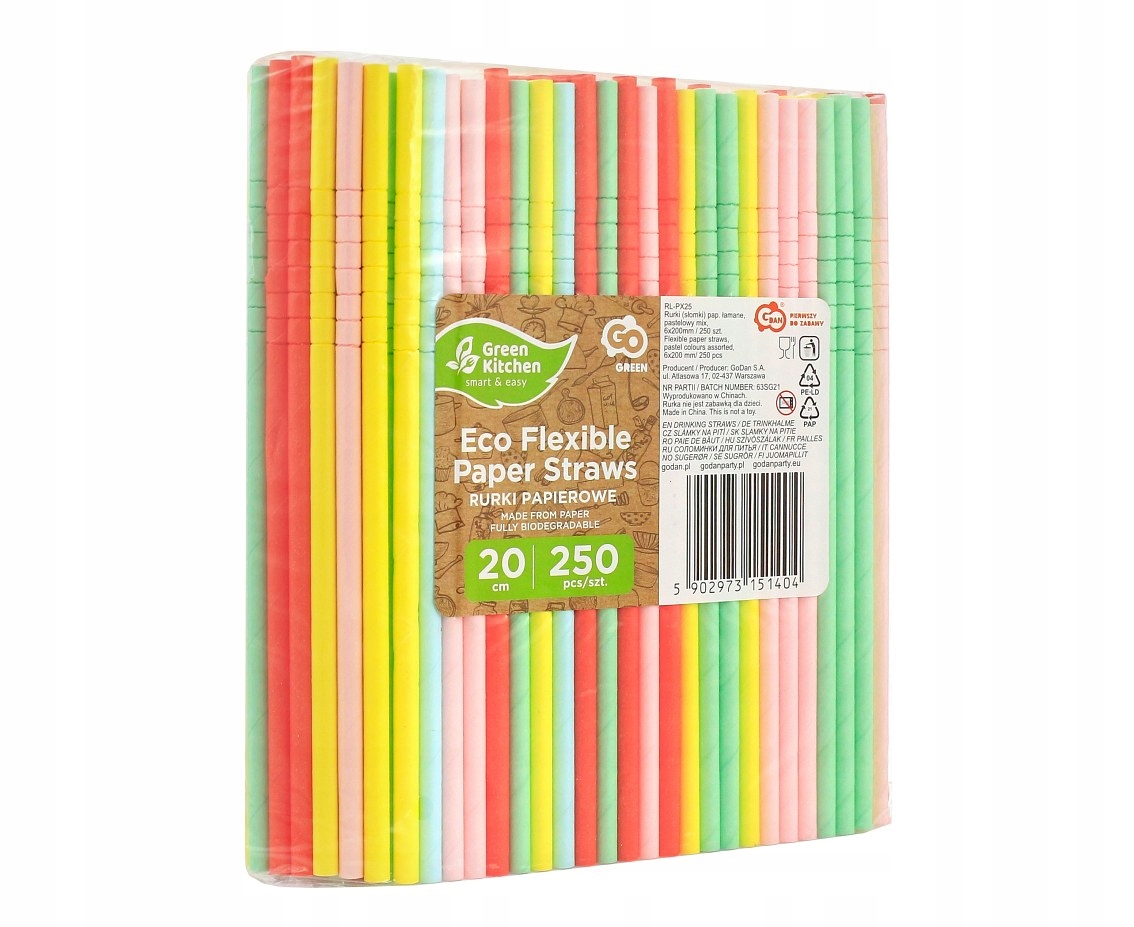 ПРОДУКТ: СОЛОМИНКИ ДЛЯ ПОИЛЬНЫХ ТРУБОК - ЛОМАНАЯ БУМАГА 250 ШТ. 6x200мм - ПАСТЕЛЬ
