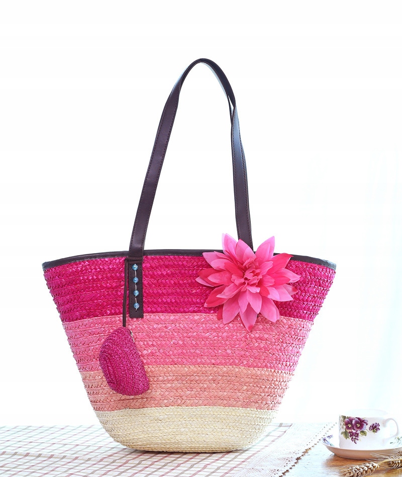 СОЛОМ'ЯНА СУМКА ПЛЯЖНИЙ КОШИК РОЖЕВИЙ КЛАТЧ