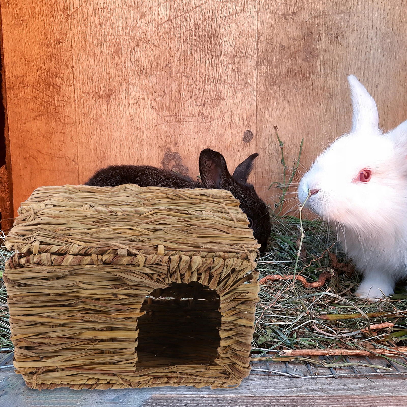 ✅ Домик, сплетенный из соломы, — идеальное место для отдыха и игр кроликов, хомяков и других мелких домашних животных.