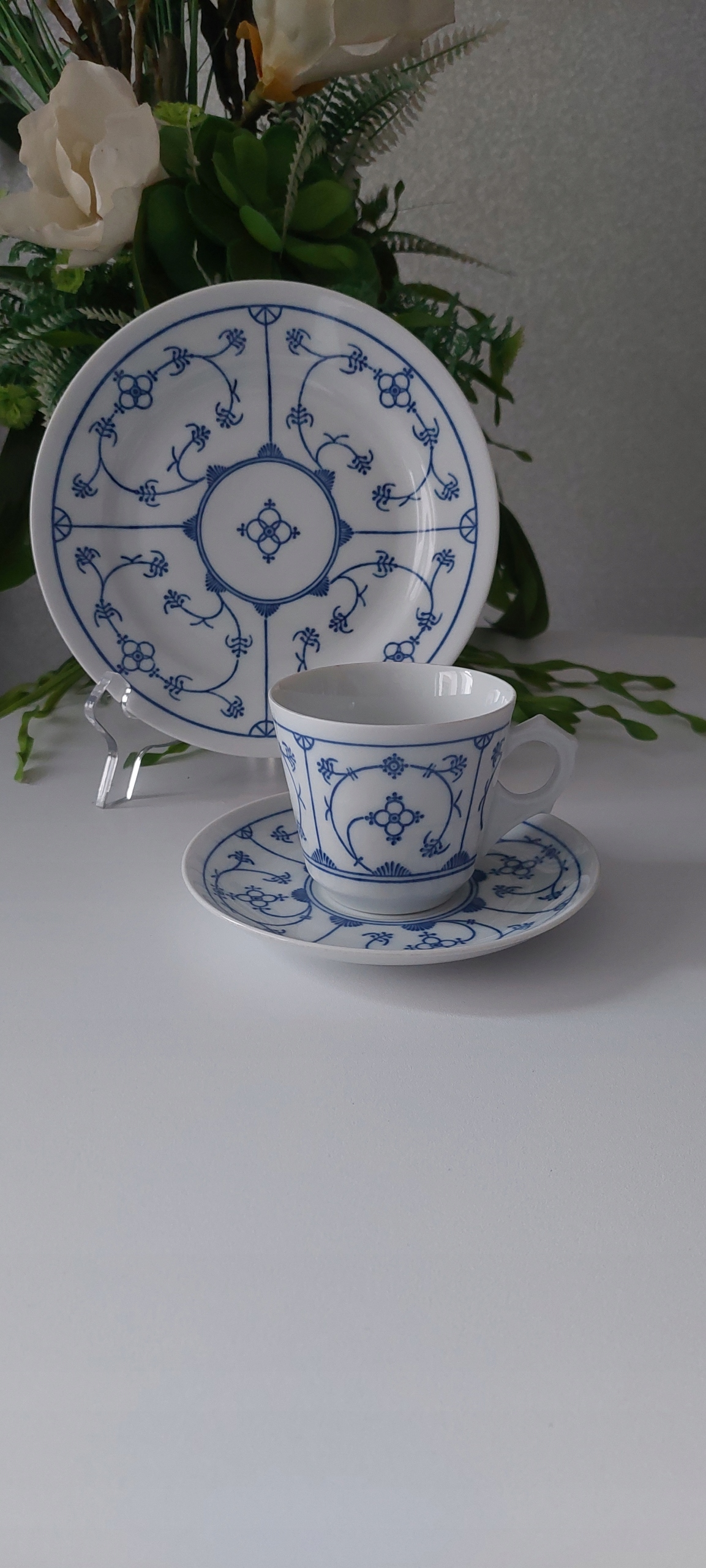 Trio Jager, узор соломка, размеры: высота чашки 7см, диаметр наполнителя 8см, диаметр тарелки для чашки 14см, диаметр десертной тарелки 19см.
