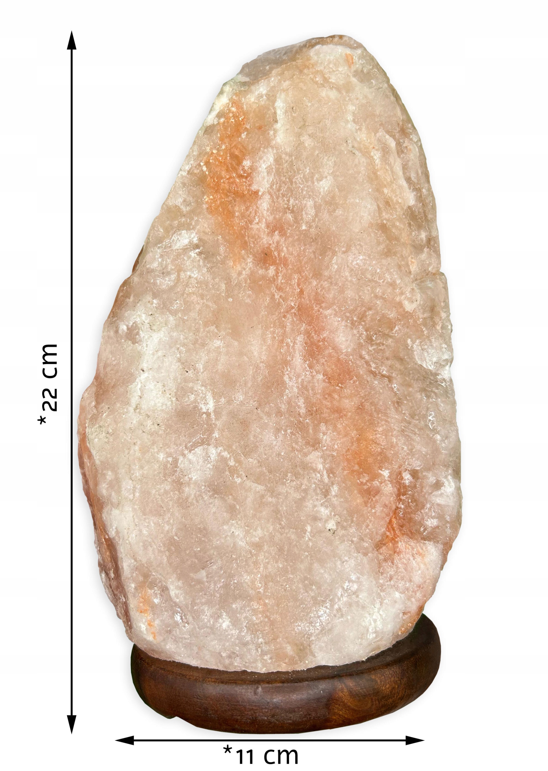 - Высота лампы: ок. 22 cm (каждый соляный блок уникален, нет двух одинаковых подсвечников)