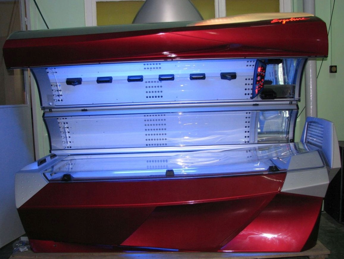 Дополнительно в нижней полке на высоте расположен плечевой и шейный солярий с установленными на голове лампами мощностью 25 Вт (13 штук).